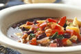 Cena: minestrone; peperoni, melanzane e zucchine alla griglia