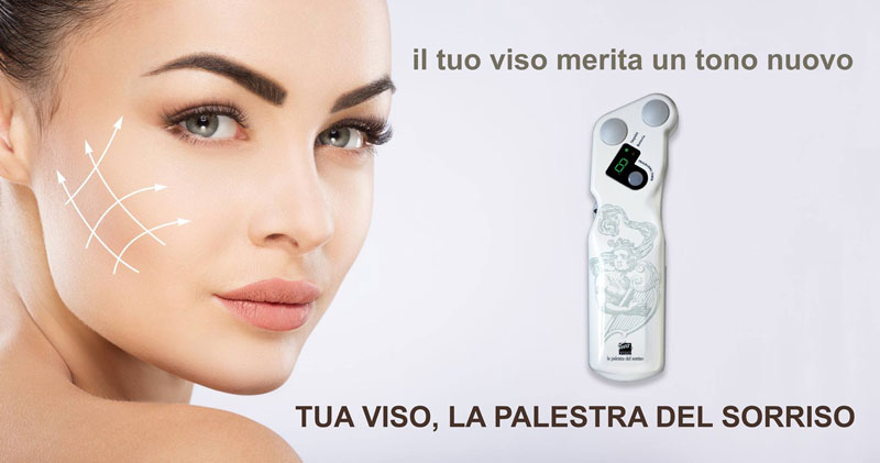 L’esercizio dei muscoli facciali, direttamente ancorati alla pelle, li rende più tonici sollevando i lineamenti del viso ed attenuando le rughe. La circuitazione elettronica miniaturizzata e tecnicamente avanzatissima genera treni d’impulsi modulati ad onda sinusoidale specifici per i delicati muscoli del viso e segnalati da un indicatore luminoso verde a led. Per la sua particolare forma e frequenza, questa onda induce precisi esercizi muscolari senza provocare alcuna sgradevole sensazione di dolore neppure ad intensità elevate ed a movimenti estremamente evidenti. Gli impulsi sono trasmessi alla pelle da due elettrodi coperti da morbide cupolette di spugna, molleggiati e di forma semisferica; gli elettrodi sono autoimbibenti e dispongono di un proprio serbatoio per contenere l’acqua necessaria ad un intero trattamento.