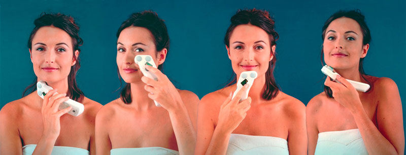Tua Viso è facile. Dopo aver riempito i serbatoi con normale acqua è sufficiente attivare l’apparecchio e posizionarlo sulla zona del viso da trattare. Agendo sulla manopola graduata si attiva l’erogazione degli impulsi e se ne regola l’intensità.