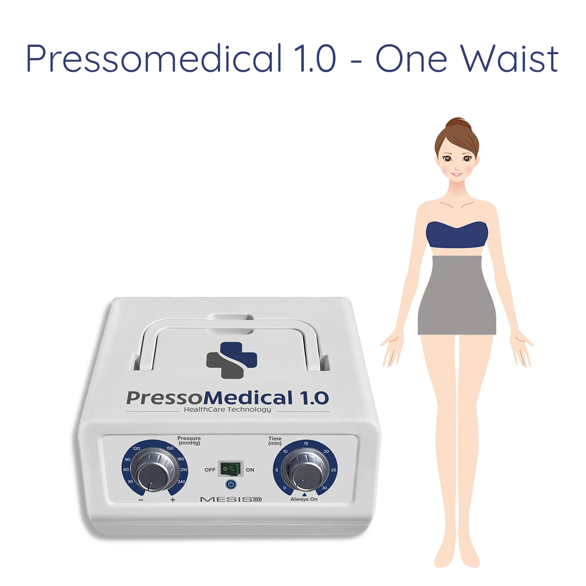 La configurazione comprende l’apparecchiatura, 1 bracciale + un connettore singolo e manuale multilingua. E’ possibile acquistare altri accessori in seguito (uno o due gambali e la fascia addominale glutei). - Pressoterapia PressoMedical 1.0 One Waist con 1 Fascia addominale Glutei