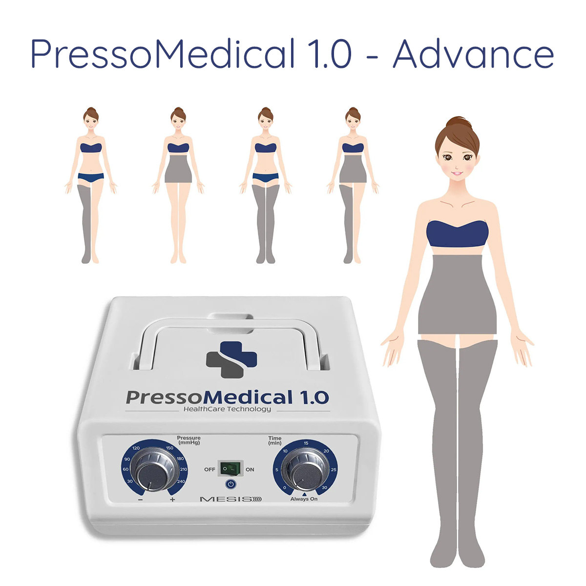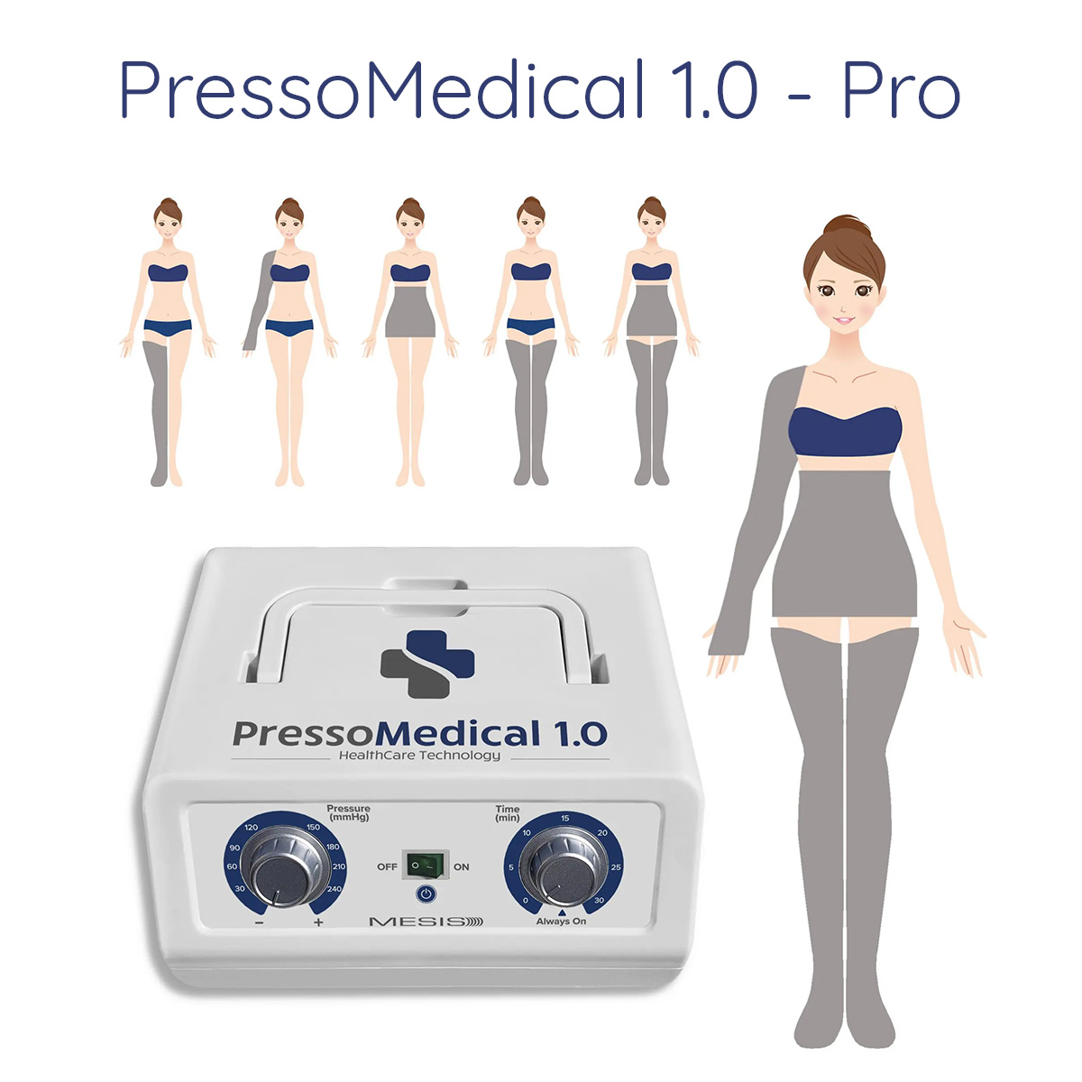 Il sistema per la pressoterapia PressoMedical 1.0 è composto dagli applicatori (gambale, bracciale e fascia; la cui dotazione cambia in base alla configurazione scelta) e da un compressore in grado di gonfiare in modo intermittente e sequenziale gli applicatori stessi. Attraverso il gonfiaggio delle camere degli applicatori, viene simulato il massaggio manuale per linfodrenaggio, il quale è in grado di riattivare la circolazione linfatica e venosa aumentando l’irrorazione dei tessuti ed il loro conseguente rinnovamento fisiologico. Il massaggio effettuato con la PressoMedical 1.0 aiuta ad attenuare la tensione muscolare causata da stress o da dolori acuti o cronici e grazie all’effetto linfodrenante permette ai fluidi interstiziali in eccesso di ritornare nel sistema circolatorio, in modo da essere correttamente eliminati. Ne consegue che Il miglior funzionamento del sistema circolatorio e del sistema linfatico coadiuva i naturali processi di eliminazione, dal corpo, delle sostanze tossiche circolanti nell’organismo.